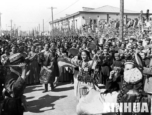 1955年10月1日,新疆各族人民歡慶自治區成立