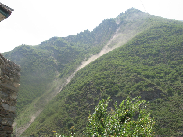 汶川地震中心附近余震時(shí)的山坡泥石流
