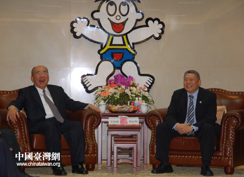 吳伯雄一行參觀位于上海的旺旺集團總部,吳伯雄與旺旺集團董事長蔡衍明相談甚歡。(攝影:中國臺灣網 田云鵬)