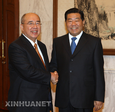 新華網北京5月27日電(記者 張勇)中共中央政治局常委、全國政協主席賈慶林,27日下午在釣魚臺國賓館會見了中國國民黨主席吳伯雄和他率領的中國國民黨大陸訪問團全體成員。