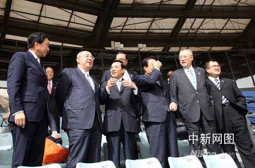 吳伯雄繞有興致地聽(tīng)取了有關(guān)棒球場(chǎng)籌備情況的介紹,他坦言這里是臺(tái)灣觀眾最關(guān)注的場(chǎng)地,并期待兩個(gè)月后中華臺(tái)北棒球隊(duì)的健兒在這里大展身手,更相信大陸觀眾會(huì)給予他們最熱烈的助威。