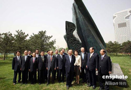 5月28日,中國國民黨主席吳伯雄一行前往北京奧林匹克中心區(qū),參觀臺(tái)灣藝術(shù)家楊英風(fēng)的雕塑作品“水袖”。中新社發(fā) 盛佳鵬 攝