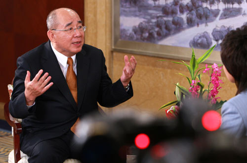 5月30日,中國國民黨主席吳伯雄在上海虹橋迎賓館接受大陸媒體集體采訪。新華社記者 龐興雷 攝