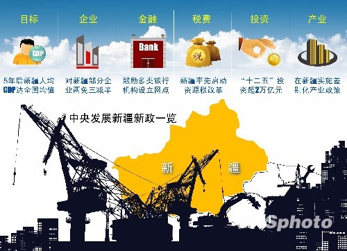 圖表:中央發(fā)展新疆新政一覽。中新社發(fā)ANP攝