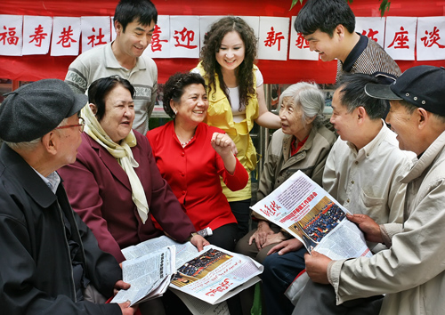 5月21日,社區各族干部群眾正在熱議中央新疆工作座談會精神。當日,烏魯木齊市天山區二道橋管委會福壽巷社區各族居民和干部歡聚在一起,熱議中央新疆工作座談會精神。居民凱比努爾·吾休爾(左四)說:“從會議精神中感受到了中央對新疆各族人民的關懷,我們對新疆的大發展充滿信心。”(完)