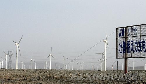 中國華能在新疆吐魯番三十里風區的戈壁灘上建設的“風車森林”已開始并網發電(5月9日攝)。