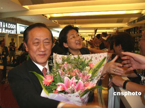 中國臺灣網(wǎng)消息 新黨主席郁慕明結(jié)束在大陸八天的“民族之旅”,七月十三日晚間十點左右抵達(dá)臺北,在機(jī)場受到支持群眾的歡迎。(來源:中新網(wǎng);作者:路梅)