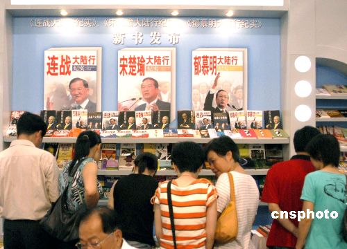 七月三十日,在廈門舉行的海峽兩岸圖書交易會上,《連戰(zhàn)大陸行紀實》、《宋楚瑜大陸行紀實》、《郁慕明大陸行紀實》三本新書一發(fā)布就受到市民的廣泛關注。(來源:中新網(wǎng);作者:王東明)