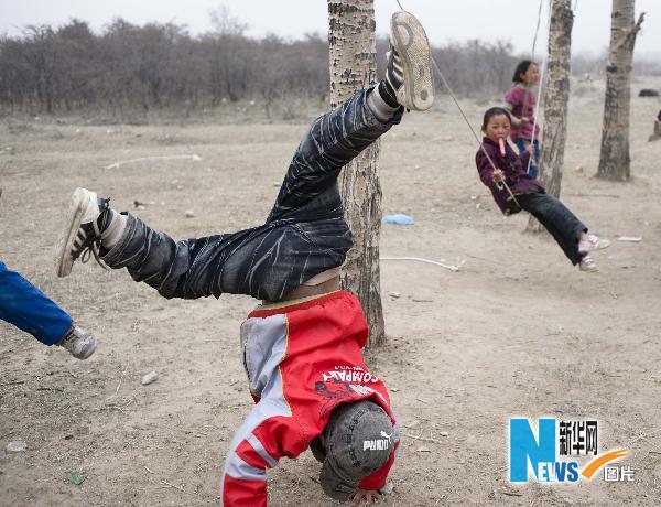 在玉樹賽馬場(chǎng)安置點(diǎn),幾名藏族孩子在帳篷外玩耍(4月25日攝)。新華社記者 劉杰攝
