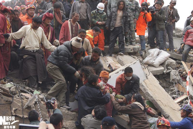玉樹(shù)大地震發(fā)生54小時(shí)后,4月16日13時(shí)48分,在玉樹(shù)縣結(jié)古鎮(zhèn)勝利路上的一堆廢墟里,救援隊(duì)員和藏區(qū)群眾一起,成功營(yíng)救了一位名叫次乃擁青的13歲藏族女孩。
