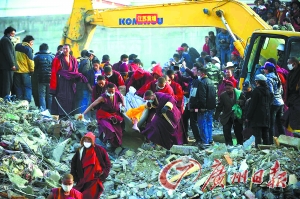 這位兩年前從暨南大學畢業后來到玉樹工作的西寧女孩向記者回憶起地震瞬間,臉上一直掛著淚:“當時我躺在宿舍床上,正準備起床,突然感到整棟樓劇烈地搖晃,然后我便發現自己的雙腳被水泥板壓住了動彈不得。我連忙掏出身上的手機撥打同事的電話,讓他們來救我。正在我等候救援的時候,我發現我身邊幾個學生也被壓在鋼筋水泥里。我便跟她們聊天,有兩個女生是正在跟我聊著聊著的時候便死了過去。看著自己的學生活生生的生命就這樣逝去,我當時心都碎了。”