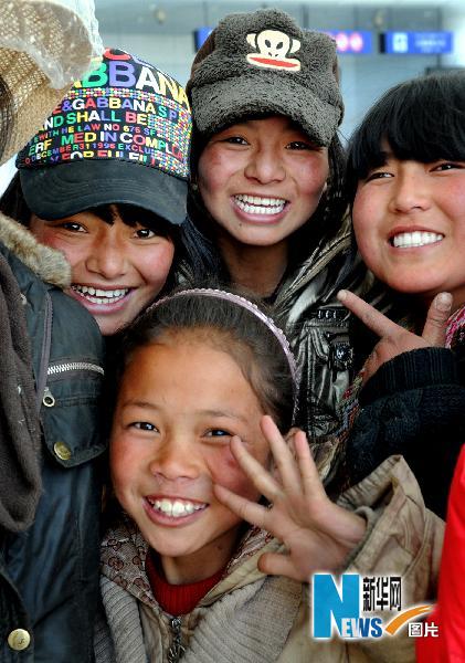 4月26日,第一次乘飛機(jī)的玉樹縣少兒福利院的藏族孩子露出快樂的笑臉。當(dāng)日,青海省玉樹縣少兒福利院21名孤兒乘坐飛機(jī)赴西寧市。他們將開始在那里的學(xué)習(xí)生活。 新華社記者陶明攝
