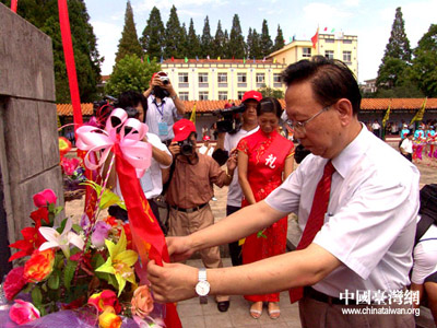 2006年7月31日,“海峽兩岸炎帝神農(nóng)文化論壇”,國(guó)臺(tái)辦交流局局長(zhǎng)戴肖峰向神農(nóng)像敬獻(xiàn)花籃