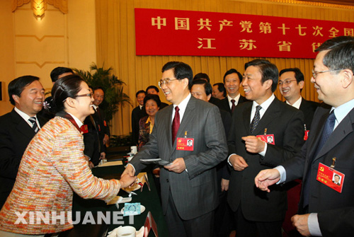 ━━記胡錦濤同江蘇代表團代表一起審議黨的十七大報告