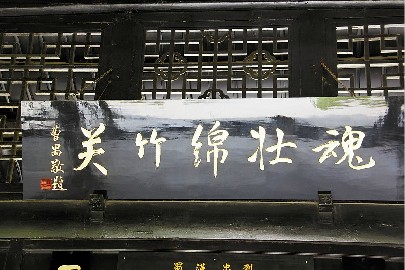 走進拜殿,張愛萍將軍題寫的“漢室忠烈”,曹禺先生題寫的“魂壯綿竹關”牌匾讓人震撼。《魂壯綿竹關》的彩塑也已修復,仿佛當年金戈鐵馬、悲壯慘烈的戰爭場面猶在眼前。借這次震后修復的機會,這些文物都做了添色等專門的處理。