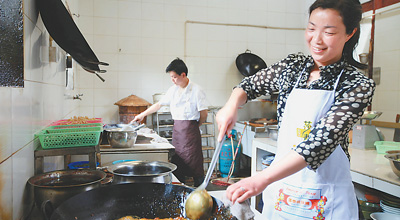 崇州人張玉秀做“火鍋雞”招待客人。渝友攝
