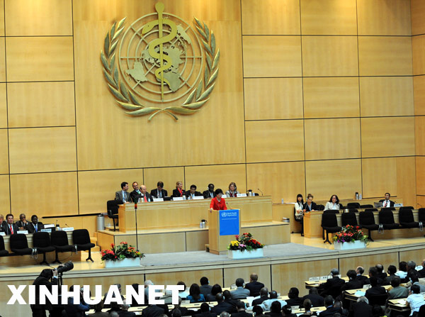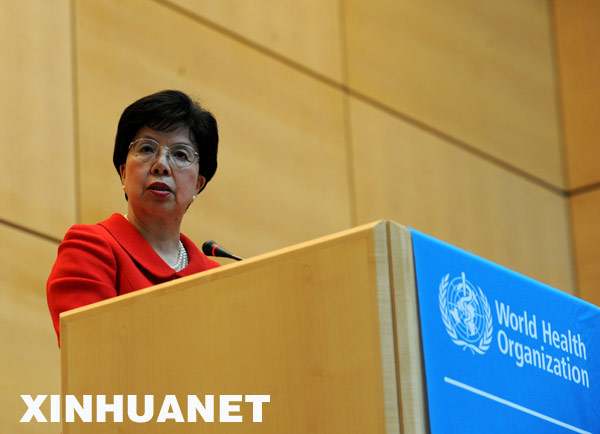 當天,第62屆世界衛生大會開幕,陳馮富珍在會議上呼吁全球加強協作,應對甲型H1N1流感。新華社記者曾毅攝