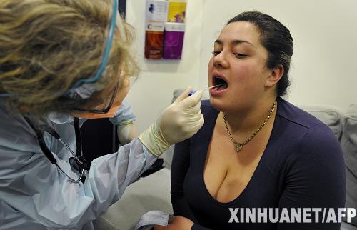 6月3日,在澳大利亞墨爾本的奧斯汀醫院的甲型H1N1流感診室外,一名護士為阿莉莎做檢測。當日,澳大利亞政府提升其維多利亞州甲型H1N1流感警戒級別,同時在全國范圍內發出通告,要求密切關注可能發展的疫情。維多利亞州現階段是澳大利亞確診甲型H1N1流感病例最多的州,約占全國確診病例的80%。截至3日上午,澳大利亞確診感染甲型H1N1流感人數增至501人。新華社/法新