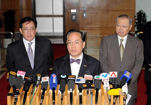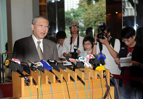 6月11日,香港特區行政長官曾蔭權宣布停課決定。當日,香港特區行政長官曾蔭權與香港特區政府大流感應變督導委員會舉行會議后表示,香港圣保祿學校有12名學生確診感染甲型H1N1流感,香港已出現集體感染個案,因此做出全港小學、幼兒園及特殊學校停課決定。新華社記者黃本強攝