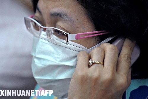 5月12日,一名戴著口罩的衛生工作者出席在泰國曼谷舉行的新聞發布會。泰國公共衛生部長威他耶·膠帕拉代當日宣布,泰國確診兩例甲型H1N1流感患者,兩人現已痊愈。 新華社/法新