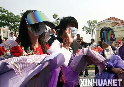 新華網上海6月3日電(記者仇逸)3日14時45分,3名康復的甲型H1N1流感患者走出上海市公共衛生臨床中心A3應急病區,康復患者代表、CA178航班經濟艙乘務長秦莉說:“看到陽光和呼吸到新鮮的空氣,很高興!”另兩名康復患者也向大家鞠躬致謝。