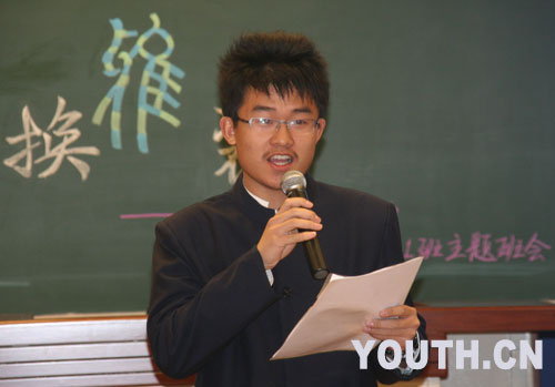 北京師范大學(xué)附屬中學(xué)的學(xué)生代表宣讀“抵制網(wǎng)絡(luò)低俗之風(fēng) 合理正確使用網(wǎng)絡(luò)”倡議書