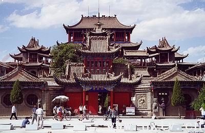位于中衛(wèi)縣城北,始建于明永樂(lè)年間(1403-1424年),經(jīng)歷代增建重修,至清代時(shí)已成為一處規(guī)模較大的古建筑群。 高廟是一座三教合一的寺廟。供奉的不僅有佛、菩薩,還有玉皇、圣母、文昌、關(guān)公等塑像,廟內(nèi)佛、道、儒三教濟(jì)濟(jì)一堂。廟前有保安寺,山門朝南,兩側(cè)建有廂房,正面為單檐歇山頂?shù)拇笮蹖毜睢5詈鬄楦邚R,有24級(jí)臺(tái)階,拾級(jí)而上,經(jīng)牌坊、南天門、中樓,最后是高達(dá)三層的五岳、玉皇、圣母殿。這些主要建筑,都在同一條中軸線上,它們層層相連,呈逐步增高之勢(shì)。在高廟主體建筑的兩側(cè),還有鐘樓、鼓樓、文樓、武樓、靈官殿,地藏殿等配殿,結(jié)構(gòu)緊密,氣勢(shì)雄偉。