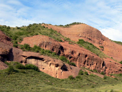 火石寨“丹霞地貌”位于西吉縣西北部的火石寨鄉(xiāng)內(nèi),南北長(zhǎng)17千米,東西寬10千米,現(xiàn)已被自治區(qū)批準(zhǔn)為“丹霞地貌”自然保護(hù)區(qū)。保護(hù)區(qū)距西吉縣城10千米,有紅色、紫紅色的山崖、山峰、山脊、怪石突兀于黃土高原之上,地貌景觀壯觀奇美。也因紅色砂巖裸露,當(dāng)?shù)厝税堰@里叫火石寨。“丹霞地貌”源自于粵北仁化境內(nèi)的丹霞山,是一種由巨厚的紅色砂巖、礫巖等紅巖組成,經(jīng)地殼抬升運(yùn)動(dòng)和流水的侵蝕、溶蝕以及風(fēng)化剝落、崩塌后退等外力作用所形成的丹崖峭壁、石峰林立等特殊地貌。丹霞地貌在我國(guó)的風(fēng)景地貌和山水景觀中,獨(dú)具一格,是我國(guó)風(fēng)景名勝區(qū)的重要類型之一。從北魏開始鑿造,盛于隋唐,數(shù)處石窟均鑿建在百余米高的石崖絕壁上。置身其間,心清神爽,飄飄欲仙。民國(guó)《西吉縣志》在介紹云臺(tái)山時(shí)說(shuō), “山高峰峻,深洞危橋,重巒疊翠,曲而幽深”,“每遇山雨欲來(lái),必先油然作云。即晴亦多煙嵐。啼鳥鐘聲,隱約其中,花香撲鼻,足堪娛目”。這里有掃竹嶺,石寺山,禪佛寺三處石窟,各有特色,他們都是自然造化與人類智慧的有機(jī)結(jié)合。
