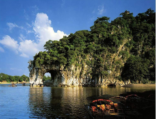 象鼻山原名漓山,又叫儀山、沉水山,簡稱象山,位于廣西省桂林市內桃花江與漓江匯流處,山因酷似一只站在江邊伸鼻豪飲漓江甘泉的巨象而得名,被人們稱為桂林山水的象征。清代工部郎中舒書在《象山記》中寫道:“粵之奇以山,粵西之山之奇以石,而省城相對之象,則又其奇之甚!