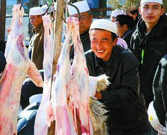 宰牲節,亦稱“古爾邦節”、“犧牲節”、“忠孝節”,“古爾邦”是阿拉伯語,原意是獻牲。時間為伊斯蘭教歷的12月10日,這天上午10點左右,回民個個頭戴小白帽,衣冠整齊,興致勃勃擁進清真寺進行會禮叩拜。會禮結束后,在條件好的地方,每人要宰一只羊,七人合宰一頭牛或一峰駱駝。所宰之肉要分三份,一份自己食,一份送親友鄰居和招待來客之用,一份濟貧施舍。典禮完畢后,眾人開始訪親問友,饋贈油香,花稞稞等互相慶賀。