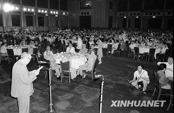 1984年6月1日,中共中央統戰部、全國人大民族委員會、國家民族事務委員會在人民大會堂聯合舉行茶話會,慶!吨腥A人民共和國民族區域自治法》通過(資料照片)。