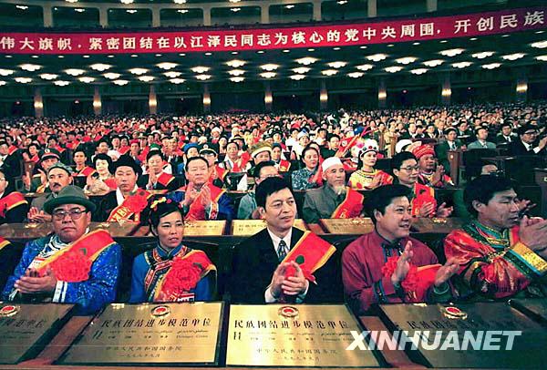 1999年9月29日,中央民族工作會議開幕式暨國務院第三次全國民族團結進步表彰大會在北京人民大會堂舉行。1254個民族團結進步模范集體和個人受到表彰(資料照片)。