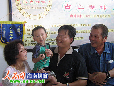 在談到自己的妻兒時,林文定的話語中透出一絲辛酸,“妻子2002年就跟我一起來到海南,我們就在咖啡地的簡易臨時木屋里吃飯、睡覺、工作,妻子和我受了很多苦。”他的第二個兒子也在海南出生,幾年來也一直跟在他們身邊!昂⒆酉胍蠈W(xué)也很麻煩,最近的學(xué)校也要3公里遠(yuǎn),他長這么大也沒有玩伴,都是自己孤零零的。” 林文定表示,雖然一起受了這么多苦,但妻子從來沒有一句怨言,一直默默的支持著他。他說:“古色咖啡的廣告語是來自臺灣,生根海南。生根海南既是咖啡生根發(fā)芽,也是我們家在這里生根,我的小兒子就在這里出生長大!7年在海南的生活讓林文定對這片土地產(chǎn)生了深深的感情,他又創(chuàng)建了自己的品牌“強(qiáng)那(英文china的譯音)咖啡”,信心滿滿的林文定還說:“我要讓我的強(qiáng)那咖啡走向全亞洲,全世界,讓西方人也能喝到我們海南出產(chǎn)的咖啡!保▽嵙(xí)生付超攝影) |