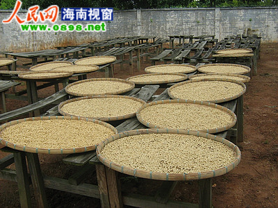 正在晾曬的咖啡豆