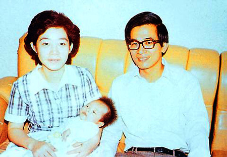 陳水扁吳淑珍帶著年幼的陳幸妤和陳致中。