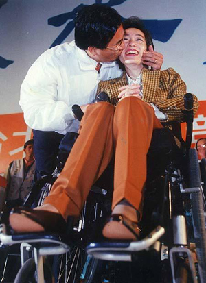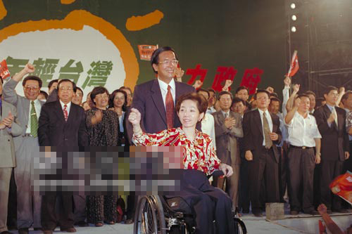 從“立委”選舉到臺北市長選舉,再到2000年、2004年兩次臺灣地區領導人選舉,但凡選情混沌不明或者處于劣勢之際,半身癱瘓的吳淑珍就會挺身而出,打出無堅不摧的悲情牌。