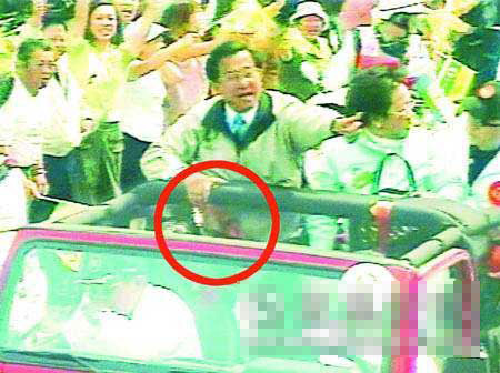 2004年3月19日,在臺灣“大選”結果公布前夕,陳水扁遭槍擊。腹部受傷。