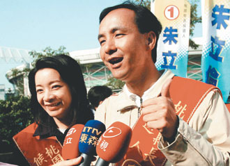 朱立倫(右)很保護妻子高婉倩,當選桃園縣長后,妻子很少出現公開場合。圖片來源:臺灣《聯合報》