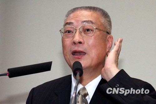9月9日晚10時,被馬英九新任命為臺灣“行政院長”的吳敦義,在中國國民黨中央黨部中山廳舉行記者會,宣布江宜樺為“內政部長”等一級政務主管名單。 中新社發 董會峰 攝
