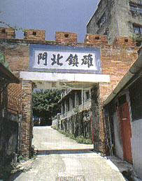 雄鎮北門位于鼓山區蓮海路,系二級古跡,為清同治年間沈葆楨請英國工程師設計督造的炮臺遺址,與對岸旗后山上的旗律砲臺“威震天南”共同夾守高雄港,也是清代從旗后往鳳山地區的必經之路。 今日,從哨船頭派出所旁小斜坡仰望,猶能感覺這座紅磚老城門雄峙堅屹的氣勢,雖然城門屢經重修,兩邊民舍緊緊擁靠,但門額上“雄鎮北門”四大字,依然穿透出虎虎英風。 乘車風向標: