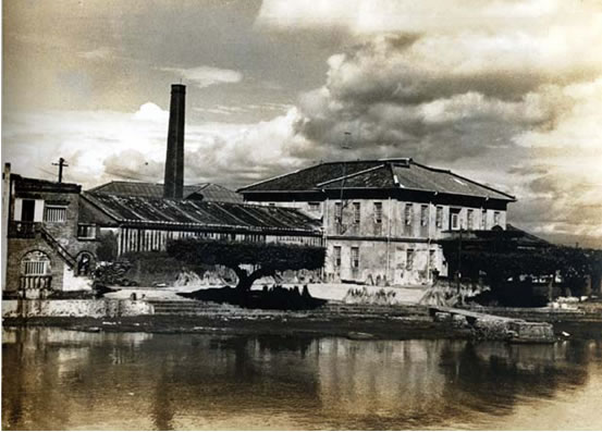 日本統治臺灣時期的四大制糖會社之一的鹽水港制糖株式會社附設酒精工廠,興建于大正五年(1916年),位于今日之鹽埕區(已拆遷)。糖蜜是蔗糖生產過程中的副產品,經過發酵后可提煉酒精,所以大部分制糖工廠都會附設酒精工廠。攝影年代約在昭和初期(1925),攝影者不詳。