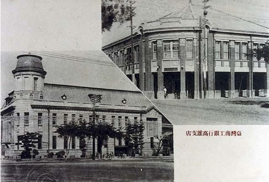 圖左 : 臺灣銀行高雄支店,興建于大正12年(1923)哈瑪星湊町(今臨海一路)街上。攝影年代在昭和五年(1930),攝影者不詳