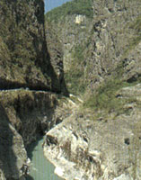 九曲洞為中橫公路的一大奇觀,常常令中外游客嘆為觀止。公路在此穿山鑿洞而建,奇巖怪石,尖峰絕壁,道路曲折穿行于堅硬的巖壁中,為人力開鑿與大自然鬼斧神工的結合。 九曲洞并不是只有九個彎,而是有數不盡的回廊,這些都是當年開鑿中橫公路的人們一斧一錘鑿出來的。這里處處山洞,步步斷崖。九曲洞上有奇巖峭立,下為深谷急流;暴雨過后,逕流形成無數“時雨瀑”,自峽谷轟然落下,蔚為奇觀。此路段已實施人車分流,游客至此莫不舍車就步,一路贊嘆大自然劈山的威力,并為當年開路的艱辛而驚悚。立霧溪左、燕子口至慈母橋間,即著名的錐麓大斷崖。斷崖最高處達1666公尺,以近乎垂直的角度插入溪谷,光潔的崖壁上鑿有一條小徑供人通行,即合歡越嶺古道的錐麓段,一般稱為錐麓古道。 錐麓古道全長約16公里,其兩端分別在巴達岡和合流口(慈母橋)附近,攀登時多從靳珩橋附近下切至谷底,強渡立霧溪,上抵巴達岡的入口,并由此展開驚險的橫斷之路。由近800公尺的高處俯瞰深峽,渺如細線的中橫公路斷續穿系在立霧溪谷間,帶來莫大的視覺震撼。由于大理石不易受風化的特質,便得古道在斷崖的部分保持得相當好,但由于出入口處崩塌嚴重,路徑又分歧,一般游客甚難抵達,僅能從靳珩橋到流芳橋間的公路上,仰望古道一線橫空,并體會“虎口線天”的懾人氣勢。