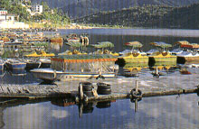 鯉魚潭靜臥壽豐鄉(xiāng)西側(cè)鯉魚山下,面積達(dá)104公頃,是花蓮縣境內(nèi)最大的湖泊,據(jù)說因湖畔山形遠(yuǎn)眺像鯉魚而得名,而潭中也盛產(chǎn)鯉魚,縣府每年都會(huì)在此放養(yǎng)魚苗,成為名副其實(shí)的“鯉魚潭”。潭水來自湖心的涌泉,清澈無比,漣漣波光倒映著群山綠意,更顯明媚深邃。 湖潭水位終年平穩(wěn),水邊泊有色彩繽紛的湖上游艇、水上腳踏車、劃船、徜徉于碧波浮動(dòng)間,任清風(fēng)佛面,無限快意。湖畔垂柳清曳,大片如茵綠地為露營的好所在,可容納1500人以上,夜里更可靜觀螢火蟲的熒熒孤光;木質(zhì)觀景臺(tái)、涼亭點(diǎn)綴其間,更添幽靜秀麗,踏青賞景悠然自得。沿著鯉魚山腳而筑的環(huán)湖道,則是漫步、騎單車的好地方。若體力充足,還可挑戰(zhàn)海拔601公尺的鯉魚山,來回約2小時(shí)的步程,幾乎都在林間穿梭,待登頂后,放眼瞭望,鯉魚潭就在腳下,木瓜溪與花蓮溪匯流入海的景象浩瀚壯闊,而花東縱谷的阡陌縱橫更是一覽無遺。常有飛行傘由山上起飛,迎風(fēng)翱翔,令人欽羨。由于鯉魚潭盛產(chǎn)鯉魚、鰱魚、福壽魚、小蝦,湖畔成排林立的餐廳便提供活魚、活跳蝦、土雞特產(chǎn),其中活跳蝦更是鯉魚潭一大特色,家家必備。