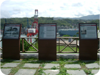 該紀念碑是為紀念日據時代,基隆筑港工程不幸殉難的職工而建。其中以公元一九二四至一九二八年興建西十六號碼頭時殉難的職工為主,因該工程犧牲之人數最多,紀念碑所在亦位于附近之球仔山上(今之高遠新村)。空間格局包括參道、紀念廣場與紀念碑三部分。參道空間位紀念碑中軸在線,以上升的階梯為主,是參拜者心情沉淀、轉化的最佳過程。紀念廣場位上、下層參道之間為整體空間中最寬敞的地方,也是眺望基隆港的良好景點。