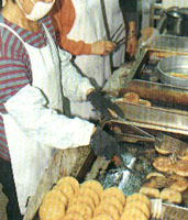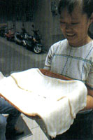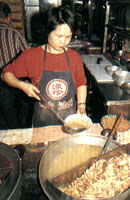 苗栗境內高山橫亙,丘陵綿延,崎嶇的地形造成交通不便,加上族群的沖突不斷,開發腳步較為緩慢,向來皆以農業為主要生產方式,以及境內占了半數以上的客家族群,都成了形成苗栗小吃風格的因素。 苗栗境內的小吃多為家常的菜色和客家飲食,沒有光鮮的門面及豪華的排場,卻以道地的做工及鮮明的特色吸引客人,頭份牛家莊做的是精純的牛肉料理;明德水庫盛產鱺魚,鄰近的頭屋鱺魚小吃店及苗栗市西山莊鱺魚小吃便以此為號召;苗栗市里還有專賣餡餅的一口香餡餅、肉圓名店——湯家肉圓;公館鵝家莊除了高明的土鵝料理,鄉土美食同樣出名;而三義的賴新魁面店,則以一碗祖傳三代的大骨肉面打響名號。當然,來到客家人的大本營,客家料理自是不能錯過,苗栗市的邱家粄條和三義的大廣新餐廳,都能讓你品嘗到客家菜酸、咸、肥、香的特殊風味。 頭份牛家莊 地址:頭份鎮中華路1047號 電話:(037)64-053 營業時間:1130-1400、1700-2000 休息時間:每月第一個周二、第三個周日 店內特色:煎牛小排、十全燉牛鞭、麻辣牛唇、炒千層肚 餐飲出身的老板,曾在大名鼎鼎的中壢牛家莊拜師學藝,因為堅持使用本土的新鮮牛肉,牛家莊的料理沒有進口冷凍肉品的生硬口感。經過老板的巧心鉆研,幾乎整頭牛都可以入菜,軟硬適中的煎牛小排、脆爽的炒牛百葉、香氣十足的十全燉牛鞭、炒牛心肝等,沾著特制的醬料,更加令人食指大動。此外,牛家莊也推出自制的牛肉干,料實味美,自用送禮兩相宜。 西山莊鱺魚小吃 地址:苗栗市文山里63-3號 電話:(037)337-485、351-153 營業時間:1100-1400、1700-2000 店內特色:鱺魚生魚片、醉毛蟹、紫蘇鴨舌、半天筍炒福菜 位于監理站旁,向以鱺魚生魚片聞名,鱺魚來自明德水庫,無土腥味,肉質香甜松軟,擁有豐富蛋白質,對傷口愈合具有奇效;即使食客滿堂,仍堅持每餐只預宰5只,品質新鮮有保證。西山莊的毛蟹亦聲名遠播,無論是清蒸、干炒或醉蟹皆獨具風味,其中醉蟹以米酒將活生生的毛蟹醉死,做出來的醉蟹蟹黃、蟹膏氣味香濃,蟹湯鮮美而蟹肉愈嚼愈香;此外,梅干扣肉、客家小炒、紫蘇炒鴨舌、半天筍炒福菜等都是招牌,再搭配傳統的木桶飯,更是一絕。 一口香餡餅 地址:苗栗市中山路49-4號 電話:(037)271-421 營業時間:140-1830 店內特色:餡餅、蘿卜絲餅、小米粥  苗栗市近年來急速竄起來的小吃,在客家人占多數的苗栗市,能以北方面食打響名號,靠的可是貨真價實的功夫。一口香只賣牛肉、豬肉、蘿卜絲、豆沙四種口味的餡餅及小米粥,餡餅都是當天現做,手搟的薄皮煎得恰到好處,趁著還有點燙口小心咬下,入口酥香松脆,帶湯的餡料鮮美有加,叫人停不了口;而蘿卜絲餡餅則是老板自創。吃完餡餅,再喝上一碗加了薏仁、五谷雜糧的小米粥,濃稠香甜的口感,更是過癮。 邱家粄條 地址:苗栗市社寮街41巷8號 電話:(037)263-497 營業時間:0700-1400 休息時間:周日 店內特色:粄條湯、炒粄條、冰鎮紅茶 邱家粄條沒有醒目的招牌,但店內的人潮始終不斷,靠的便是獨特的做工和道地的材料。創始于日本昭和年間的邱家粄條,80多年來始終秉持不添加太白粉和硼砂的原則,以純手工精制,店里賣的粄條都是當天大清早蒸出來的,鮮香味美,滑溜爽口,吃得出在來米的香甜,不管是煮湯或熱炒,都十分可口;餐后再來一杯特制的冰鎮紅茶,提神解膩,令人吮指回味。 湯家肉圓 地址:苗栗市中山路713號 電話:(037)322-514 營業時間:0600-1800 休息時間:農歷每月17日 店內特色:肉圓、紅豆湯 苗栗市南苗市場附近,有家“湯家肉圓”,低矮老舊的店面,也沒有掛上任何招牌,當地人卻是老少皆知。其肉圓以純手工制成,每天都要賣出600多個;假日客人多時,下午3點便賣個精光。湯家肉圓不但外皮松軟帶勁,大塊的肉片、竹筍、香菇等內餡,讓人看得垂涎、吃得滿意。其紅豆湯也是一絕,整鍋的大、小紅豆熬的松松綿綿,入口清甜不膩,令人百吃不厭。