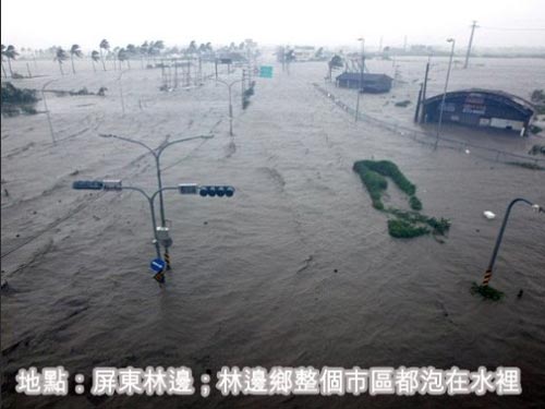 屏東林邊,林邊鄉整個市區都泡在水里。來源:臺灣《聯合報》