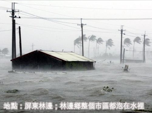 屏東林邊,林邊鄉整個市區都泡在水里。來源:臺灣《聯合報》