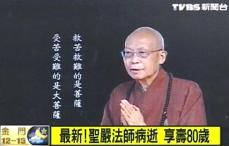 臺(tái)灣法鼓山圣嚴(yán)法師3日下午辭世,享壽79歲。來(lái)源:臺(tái)灣TVBS電視臺(tái)