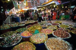 從日據(jù)時代開始,繁華的臺北市里,“足食”為“迪化街”的代名詞,而“豐衣”指的就是聞名全臺的“華陰街”。從清代到日據(jù)初期,迪化街的店鋪主要以經(jīng)營南北雜貨、茶葉、米業(yè)、布帛和中藥為主。一直到今天,迪化街仍是全臺灣最大的南北貨、布匹和中藥批發(fā)零售市場;尤其每年春節(jié)的“年貨大街”活動,更吸引無以計數(shù)的人潮。年貨大街的攤位采取復(fù)古的形式設(shè)計,并以環(huán)保素材搭設(shè)而成。街道布滿旗幟與燈籠,為采買年貨的人創(chuàng)造了獨特的視覺景觀。